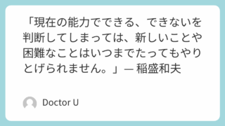 「現在の能力でできる、できないを判断してしまっては、新しいことや困難なことはいつまでたってもやりとげられません。」— 稲盛和夫